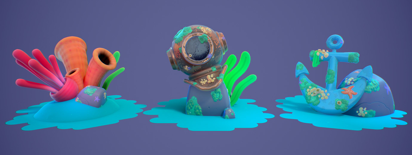Various background details. Human characters were created using Adobe Fuse and Mixamo for rigging and animation to make the creation process faster.