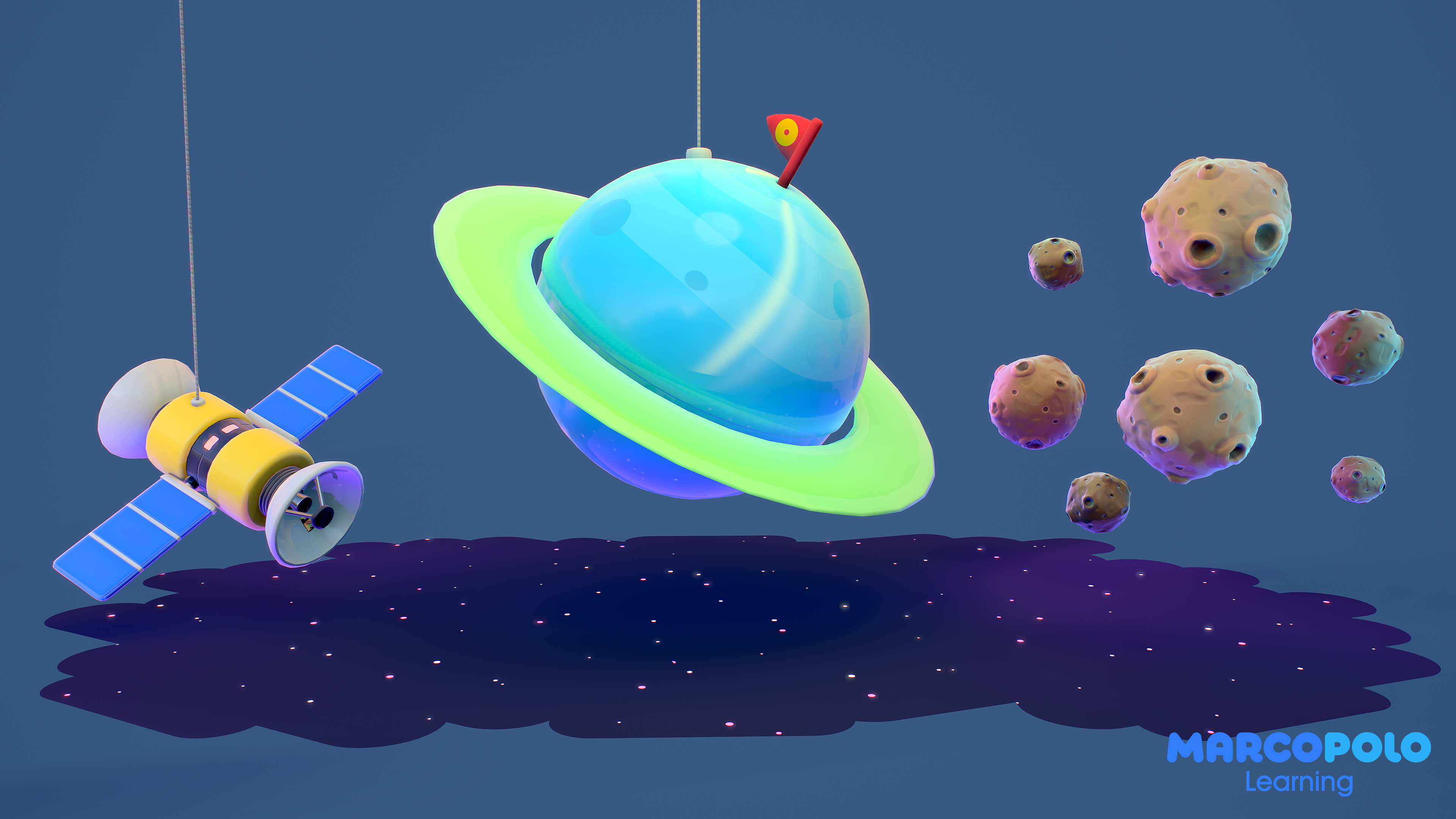 Space themed props and skins for the Adventure Map for kids learning app Marco Polo: World School.