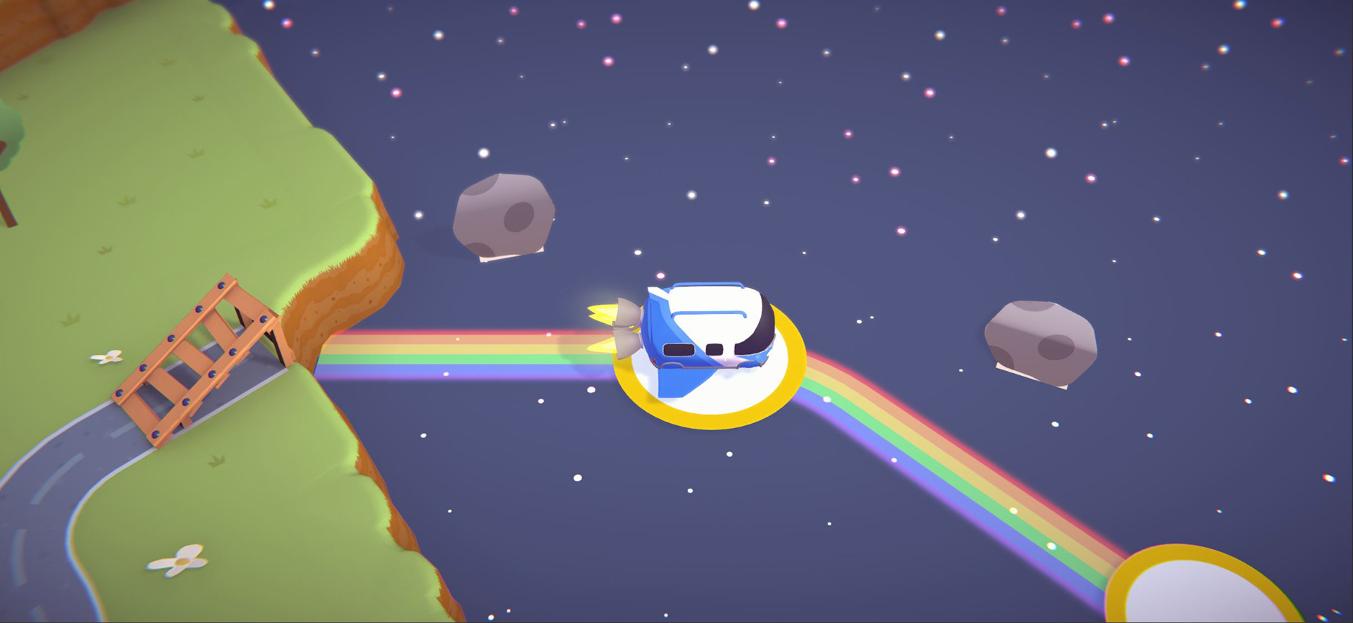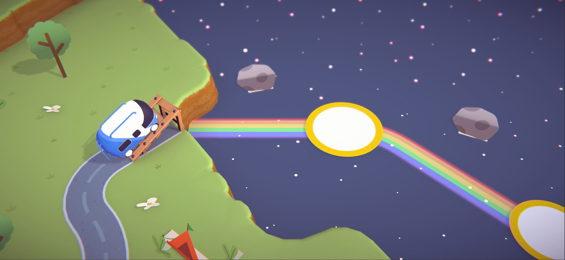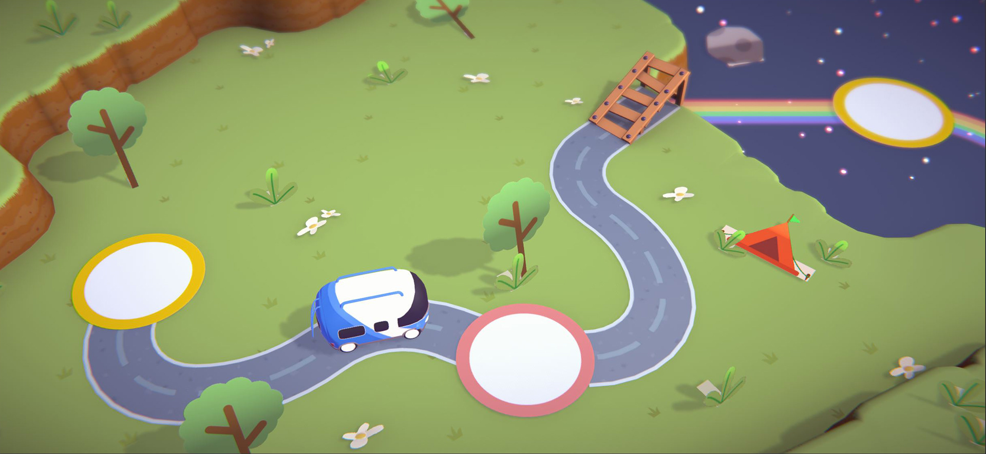 As soon as I was tasked with generating ideas for how the Adventure Map could look, I knew exactly what I wanted it to be: an isometric world inspired by games such as Overcooked that changes its appearance based on the type of topic covered in that Learning Adventure. I built the above concept using Forest and Space as example topics to showcase how the visuals could look as well as how we could animate and even transform the Polo Mobile based on those areas. I also wanted the map to feel like a pop-up book of sorts, as if this part of the app was actually taking place within a miniature world within the Hub Classroom. This style also worked well on a technical and production level as well as asset production time was greatly reduced by not having to build a lot of detailed 3D assets and polygon count is also kept low so we can keep the map loaded in the background of the app if needed.
