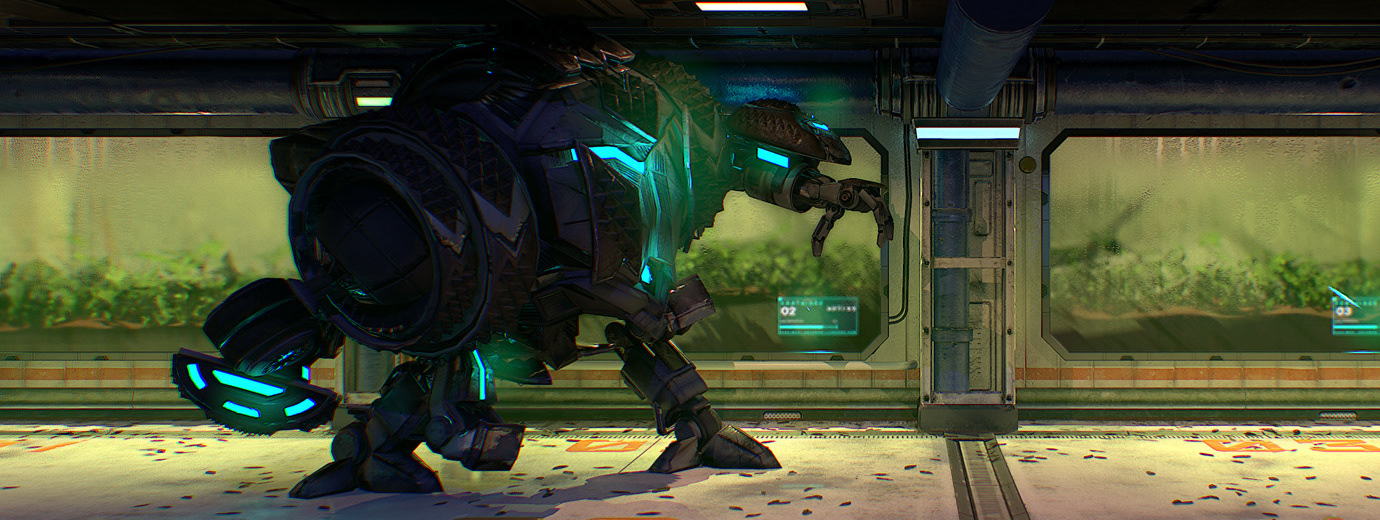 When I first saw the design for the Synth Workshop it was my favourite environmental asset in the game and so when it came to creating the 3D model I wanted adapt Matt's original concept as faithfully as possible. The only change I made to the design was switching the signs text to an icon as I felt this would read better when seen from the gameplay camera which was often situated further back in larger spaces.